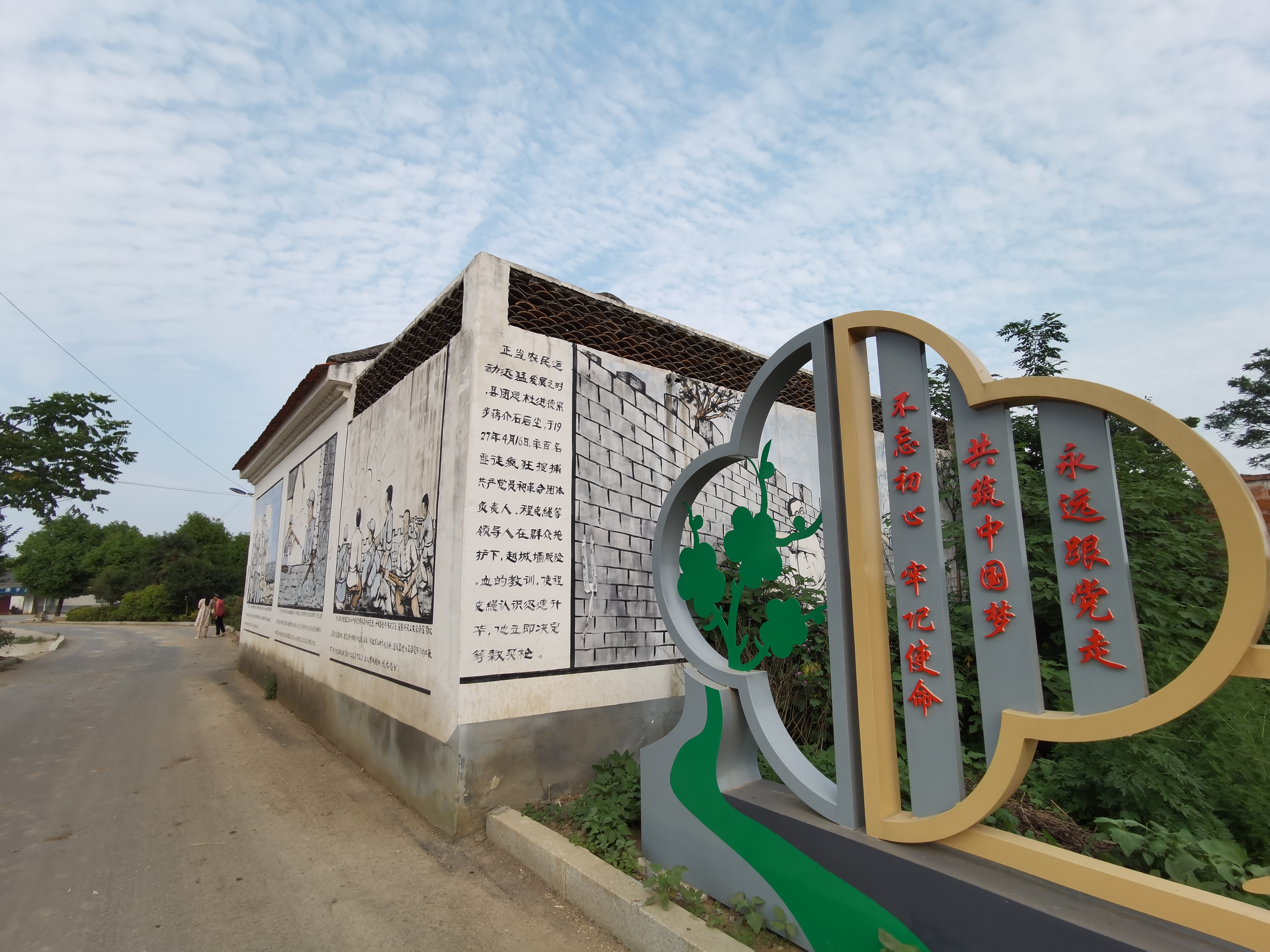 時(shí)空轉(zhuǎn)換。程克繩等革命先烈戰(zhàn)斗過的紅色熱土,已經(jīng)發(fā)生了翻天覆地的變化。行走在程坡村,只見硬化過的村道平坦、干凈,道路兩邊綠樹成蔭、鮮花綻放,農(nóng)房整修一新,墻上彩繪再現(xiàn)了程克繩光輝事跡的故事場景,村里三三兩兩的老人,聚在樹蔭下拉家?!?/p>