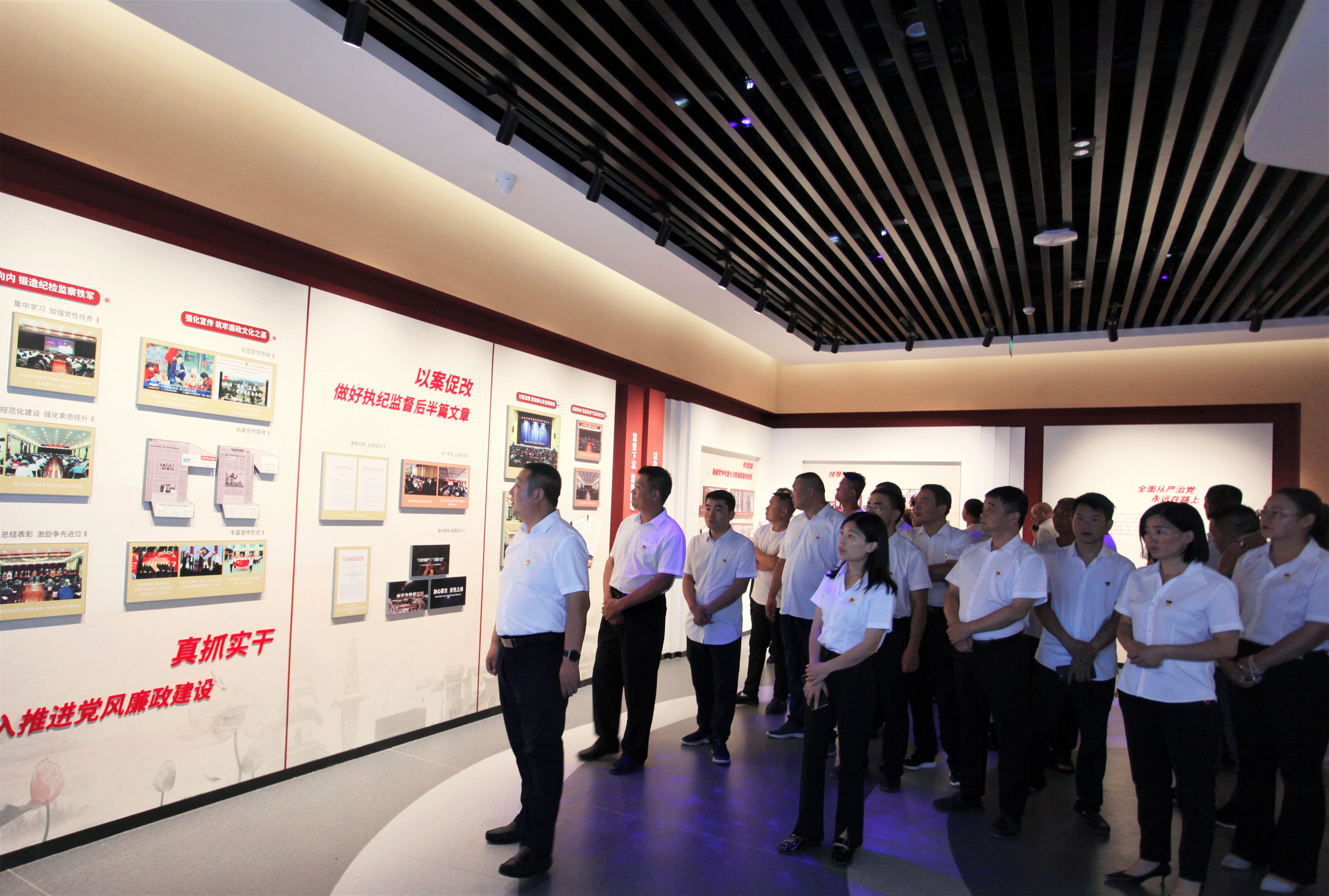 在講解員的帶領(lǐng)下,參觀人員認真觀看了每一塊展板、每一張圖片、每一段視頻。廉政警示教育展廳內(nèi)綜合運用圖文、場景再現(xiàn)、互動體驗及多媒體聲光電等形式,從歷史的深度展示了中國共產(chǎn)黨歷次黨代會不斷加強紀律建設、全面從嚴治黨的偉大歷程,又展示了黨的十八大以來查處的各級領(lǐng)導干部嚴重違紀違法和群眾身邊的“微腐敗”案例等,將廉政文化教育、反面典型教育、理想信念教育結(jié)合在一起,形式多樣,內(nèi)容豐富,既有警示又受教育。