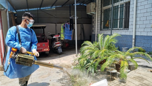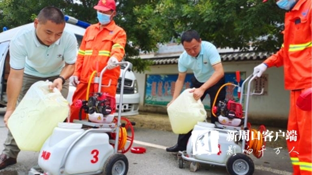 在女媧景區(qū),只見老關(guān)和其他3名消殺人員發(fā)動機(jī)器、拉出噴管、手提噴槍,一邊前進(jìn),一邊揮動,白色水霧隨之噴涌而出,所到之處細(xì)菌病毒“無處遁形”。大家齊心協(xié)力,很快就把景區(qū)的角角落落消殺個(gè)遍。