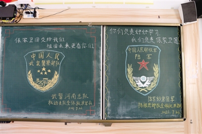 “保家衛(wèi)國交給我們,祖國未來更看你們!”“你們負(fù)責(zé)好好學(xué)習(xí),我們負(fù)責(zé)保家衛(wèi)國!”在鄭州市第七十三中學(xué)的一間教室里,參與救災(zāi)援助的抗洪官兵們給同學(xué)們留下了兩幅黑板報。在師生們眼里,這就是名副其實的“最美黑板報”。