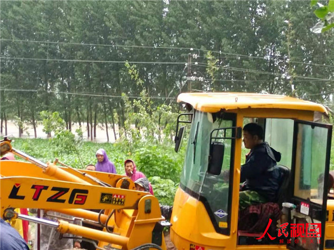 雨越下越大,衛(wèi)河水位持續(xù)上漲,永康段因前期澆地破開的口由于水流量過大,出現(xiàn)缺口,群眾的生命財產(chǎn)安全受到了威脅,河上巡邏的村干部發(fā)現(xiàn)衛(wèi)河一處排污口不斷往外涌水,立即報告給張乾書記,此時,張乾家中剛做好午飯,張書記把碗往桌上一放,還沒來得及吃一口,穿著雨衣就沖出門外,趕到現(xiàn)場,看到情況十分緊急,千鈞一發(fā)之際,他不顧危險,大喊一聲“我來!大家把沙袋遞給我!”縱身跳入湍流的河中,只見他佝僂起身體,降低重心,以防被急流沖倒,一邊等著岸上接力過來的沙袋,在他抬頭等著接沙袋的時候,雨水打得他的眼睛都睜不開,他瞇著眼睛將一袋袋沙袋壘到衛(wèi)河封堵口,成功封堵缺口。經(jīng)過一夜的努力,和此時,已經(jīng)夜里四點鐘,張書記全身濕透,雙腿被冷水泡得瑟瑟發(fā)抖,剛被人拉上岸,又有人來說共產(chǎn)主義渠永康段又出現(xiàn)決堤。張乾書記二話沒說,又號召村上幾十人,立即趕到現(xiàn)場,指導(dǎo)防汛人員進(jìn)行搶險。“先挖溝,趕緊把水排掉,如果大堤經(jīng)過長時間的浸泡,極容易形成塌方?!弊屑?xì)觀察險情后,張乾趕緊吩咐道。為了填大堤,他親自開著鏟車填放沙袋,但是由于大堤被水沖垮,已經(jīng)承受不住鏟車的重量,此時,他反應(yīng)迅速,趕緊倒車返回岸上,幸好沒有掉入河中,隨即又發(fā)動村內(nèi)群眾開來自家的兩輪、三輪車?yán)^續(xù)王河堤上面運送沙袋,但是由于水流量太大,杯水車薪,又聯(lián)系鎮(zhèn)上的領(lǐng)導(dǎo),協(xié)調(diào)了周邊村莊的黨員群眾一起,經(jīng)過連夜奮戰(zhàn),終于將決堤處堵住。