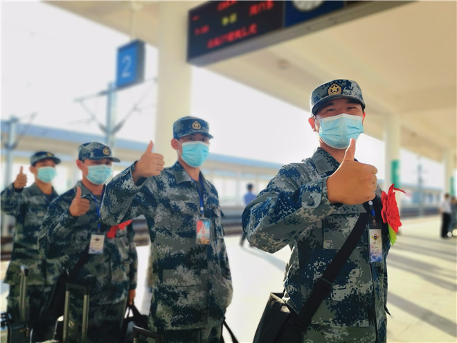 披紅綬帶,胸佩光榮花。候車大廳內(nèi),經(jīng)過(guò)役前訓(xùn)練的新兵們已經(jīng)有了“兵樣子”,站姿挺拔,整齊列隊(duì),戎裝待發(fā)。根據(jù)疫情防控要求,不再集中舉行送行送兵,新兵們將分批次從周口出發(fā),開啟他們的軍旅新征程。湯維政、張?jiān)鲗?duì)入伍新兵表示祝賀,對(duì)他們積極響應(yīng)祖國(guó)召喚,踴躍報(bào)名參軍,以實(shí)際行動(dòng)依法履行服兵役義務(wù)表示贊揚(yáng)。同時(shí)希望他們到部隊(duì)后,迅速投入新的生活,時(shí)刻嚴(yán)格要求自己,珍惜青春、安心服役,加強(qiáng)學(xué)習(xí)鍛煉,爭(zhēng)當(dāng)周口好兵,嚴(yán)守部隊(duì)紀(jì)律,苦練過(guò)硬本領(lǐng),努力把自己鍛煉成有靈魂、有本事、有血性、有品德的新一代革命軍人。