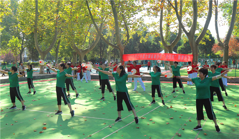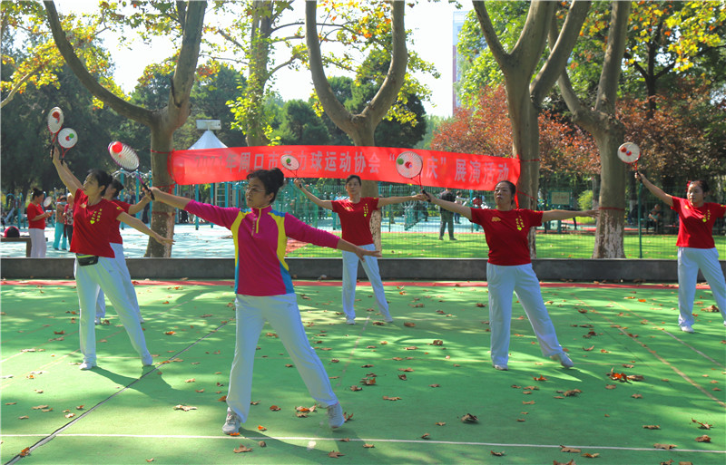 9月30日上午,市柔力球運(yùn)動(dòng)協(xié)會(huì)在周口人民公園內(nèi)舉行迎國慶柔力球展演活動(dòng),來自人民公園雙拍雙球柔力球隊(duì)、示范區(qū)柔力球隊(duì)、中心區(qū)柔力球隊(duì)、人民公園柔力球隊(duì)和競技柔力球隊(duì)的柔力球愛好者揮動(dòng)球拍,以良好的精神風(fēng)貌展示了柔力球規(guī)定套路和對抗訓(xùn)練動(dòng)作等,為國慶節(jié)獻(xiàn)禮。