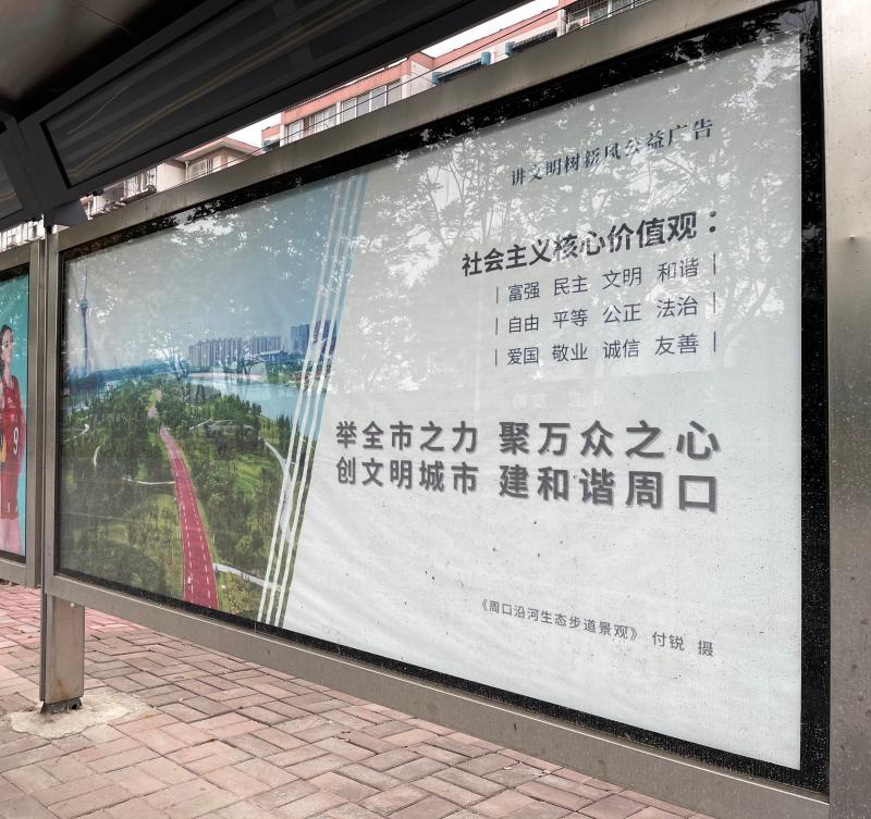 周口市公交總公司總經(jīng)理助理朱懷彬表示,為確保文明標(biāo)語能讓市民抬眼可見、駐足即觀,目前,我市中心城區(qū)公交候車臺(tái)的公益廣告牌投放覆蓋率已超過50%?!盁ㄈ灰恍碌墓徽九_(tái),既扮靚了周口的城市面貌,提升了市民的出行體驗(yàn),又潛移默化地把社會(huì)主義核心價(jià)值觀根植于市民內(nèi)心?!敝鞈驯蛘f。②10