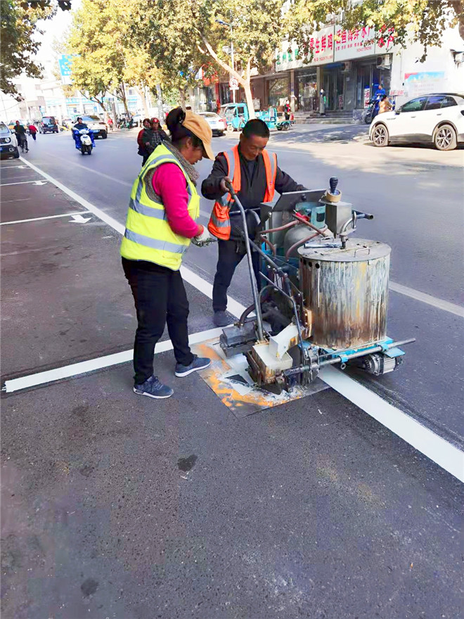 10月26日晚6時(shí)許,在周口大道與文體路交叉口附近,幾名工作人員正在使用熱熔畫線機(jī),對(duì)路面上不太清晰的斑馬線進(jìn)行重新施劃。“路面標(biāo)線是公路的‘無(wú)言哨兵’,覆畫后的道路交通標(biāo)線醒目美觀,一方面消除了安全隱患,保障了交通安全和暢通,另一方面也極大地美化、扮靚了沿線路域環(huán)境,成為城市文明的一道風(fēng)景線?!痹撠?fù)責(zé)人說(shuō)。