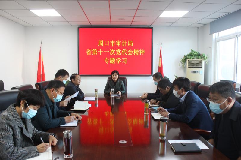 11月9日上午,周口市審計局黨組召開專題學習會議,傳達學習省第十一次黨代會精神,局黨組書記胡艷華主持會議并講話。
