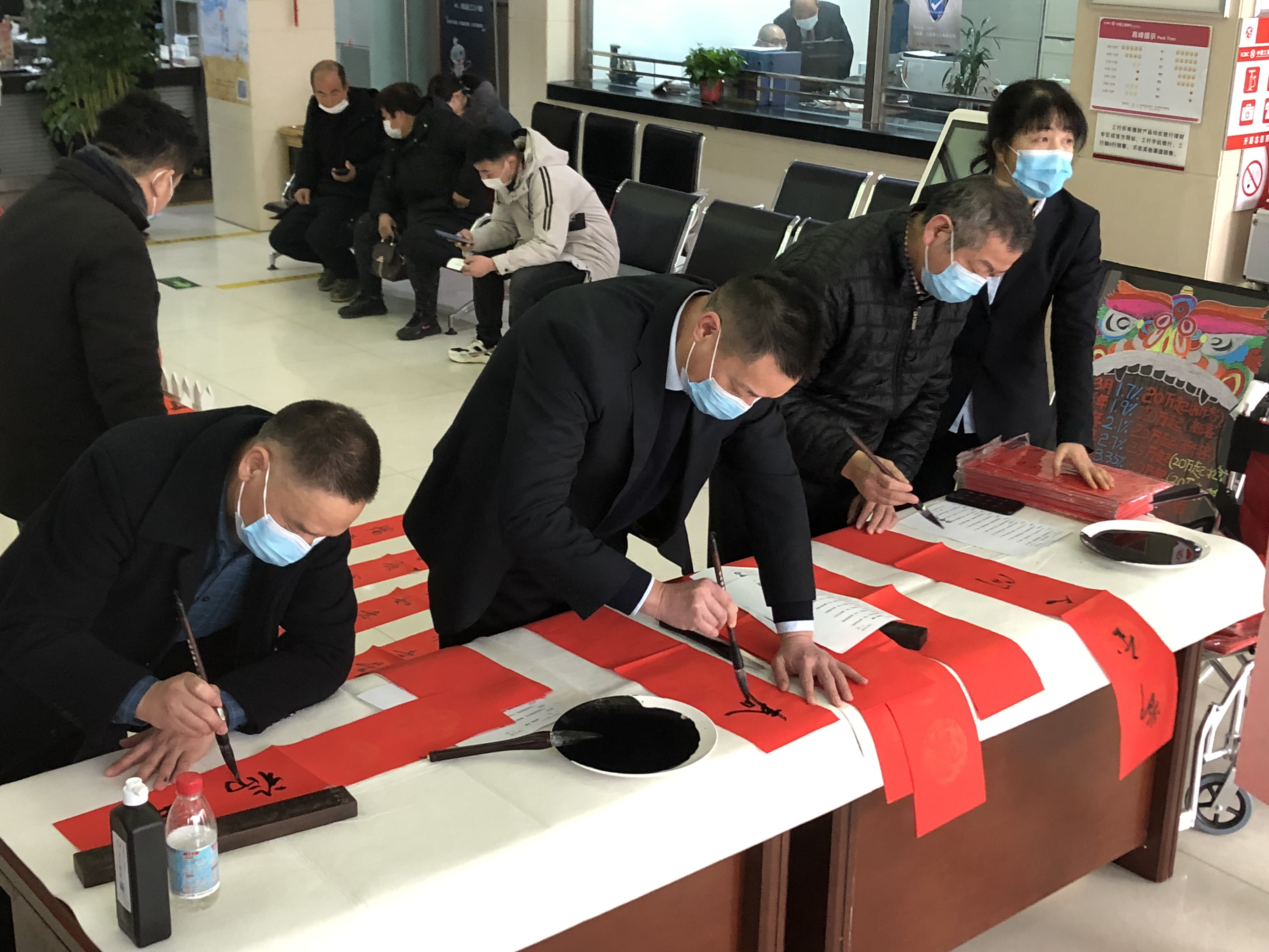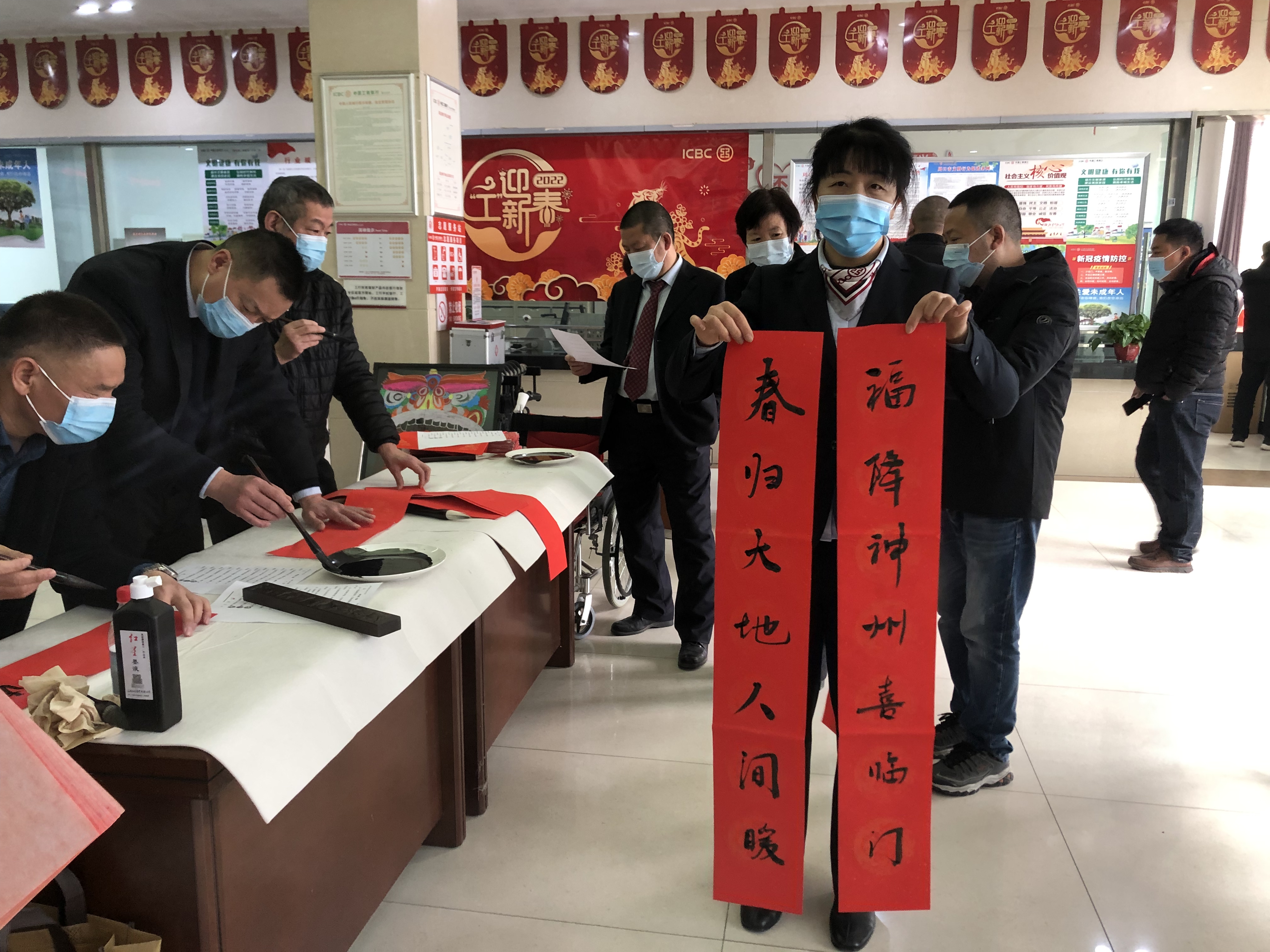 春節(jié)臨近,工行周口分行開展“寫春聯送福字”活動,精心組織本行書法協(xié)會會員分赴基層網點,在營業(yè)廳堂揮毫潑墨,為客戶寫春聯、送福字。把一幅幅盛贊祖國昌盛、人民安居樂業(yè)、新春祝福送給客戶。此次活動,該行共計為客戶送出春聯1300余幅,受到廣大客戶的稱贊。 李玉 攝①2