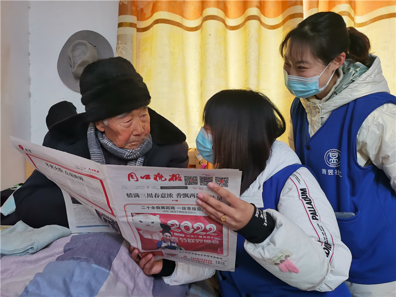 今年80歲的李東明,喜歡讀書看報,但是由于年齡原因視力逐漸下降,讀書看報越來越不方便。自從敬老院內(nèi)設立了社工站,他每天最高興的事就是社工為他讀報紙上的內(nèi)容?!靶姨澾@些孩子的陪伴,讓我的老年生活越來越幸福!”李東明說。