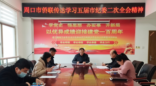 近日,周口市僑聯(lián)召開(kāi)黨組(擴(kuò)大)會(huì)議,學(xué)習(xí)貫徹五屆市紀(jì)委二次全會(huì)精神,市僑聯(lián)主席馮連根主持會(huì)議并講話(huà)。
