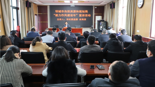 近日,項(xiàng)城市自然資源和規(guī)劃局開展“能力作風(fēng)建設(shè)年”主題宣講活動(dòng),特邀請(qǐng)項(xiàng)城市紀(jì)委監(jiān)委宣傳部宣講師余海濱前來授課。