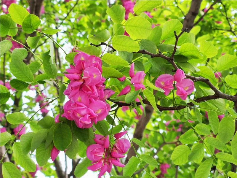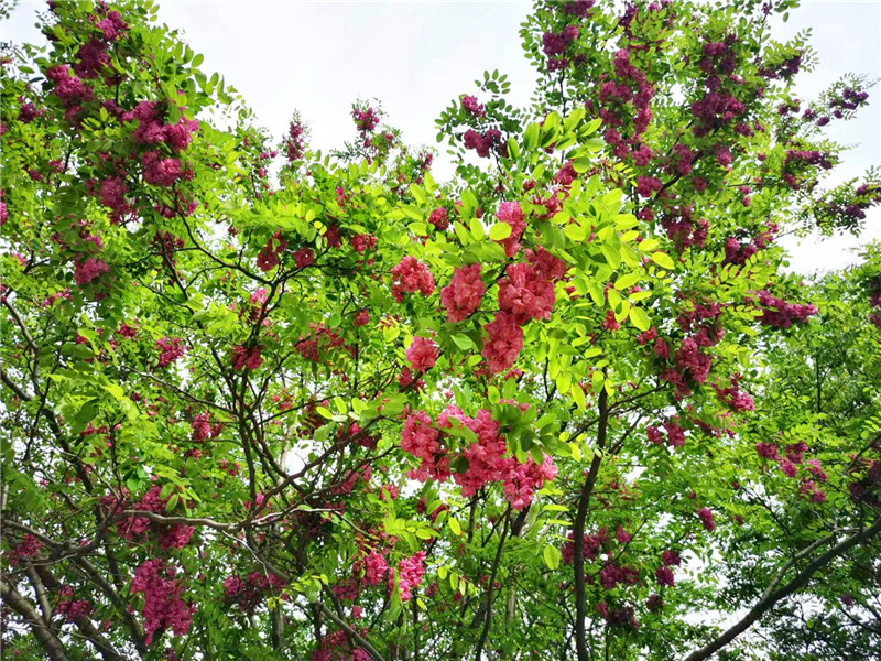 “槐林五月漾瓊花,郁郁芬芳醉萬家?!毖巯?,在周口濱河公園,紅色的槐花怒放,芳香四溢,惹人心醉。陽光下,一串串、一簇簇、一樹樹槐花隨風(fēng)搖曳,美不勝收。周口日報(bào)·周道客戶端記者 普淑娟 攝