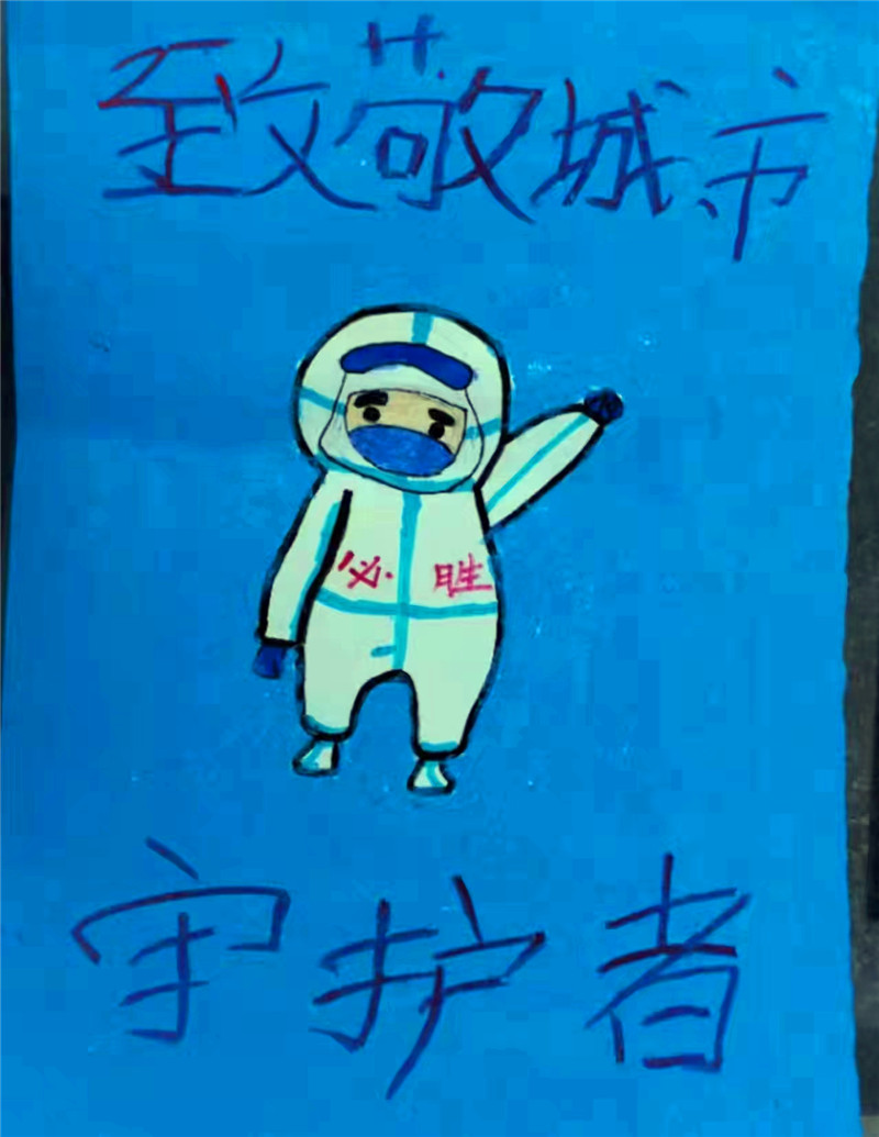 到太康3天后,武蕓輝又被派到縣城內(nèi)的封控區(qū)進(jìn)行核酸采樣,這里工作量更大,危險程度高,要挨家挨戶上門采樣,武蕓輝和年輕人一樣,每日樓上樓下反復(fù)數(shù)次,多次衣服被汗水浸透。有時天氣炎熱,很多人穿起了短袖,武蕓輝她們穿著密不透風(fēng)的防護(hù)服,還要樓上樓下反復(fù)跑,體力透支很大。一分耕耘一分收獲,在建業(yè)小區(qū)南院,武蕓輝上門核酸采樣結(jié)束后,一個叫鄭迪一的小朋友叫住了她:“阿姨,辛苦了,謝謝您!”隨后又遞給武蕓輝一個袋子,里面有孩子寫的感謝信和繪畫。