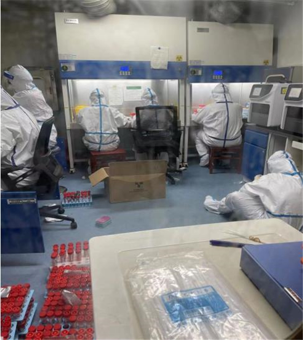 如果說有一座城叫眾志成城,那必定有一種力量叫檢驗(yàn)擔(dān)當(dāng)。在幾十平方米的實(shí)驗(yàn)室內(nèi),環(huán)境消毒、物資準(zhǔn)備、接收標(biāo)本、編號(hào)錄入、核酸提取、環(huán)境消殺、基因擴(kuò)增、結(jié)果研判、高壓消毒、信息上報(bào)、表格填寫、室內(nèi)質(zhì)控、室間質(zhì)評(píng)……每一個(gè)環(huán)節(jié)都需要嚴(yán)格規(guī)范操作,不放過任何一個(gè)細(xì)節(jié)、不能有一絲毫紕漏。在核酸檢測(cè)過程中,王健嚴(yán)格遵守生物安全制度,標(biāo)準(zhǔn)穿戴三級(jí)防護(hù)裝備,帽子、N95口罩、防護(hù)服、護(hù)目鏡、乳膠手套、隔離衣……一個(gè)也不能少。為以最快速度出具檢測(cè)結(jié)果,確保實(shí)驗(yàn)室安全,王健在低于標(biāo)準(zhǔn)大氣壓的負(fù)壓狀態(tài)下進(jìn)行工作。三級(jí)防護(hù)和大量檢測(cè)工作時(shí)常會(huì)使他出現(xiàn)汗流浹背、呼吸不暢、頭痛等缺氧癥狀,對(duì)體力是一個(gè)極大挑戰(zhàn)。但他總能克服這些困難,不辜負(fù)黨和人民的期望,在抗擊新冠肺炎疫情的戰(zhàn)場上勇?lián)姑_鋒在前,為人民群眾筑起生命健康的第一道防線!