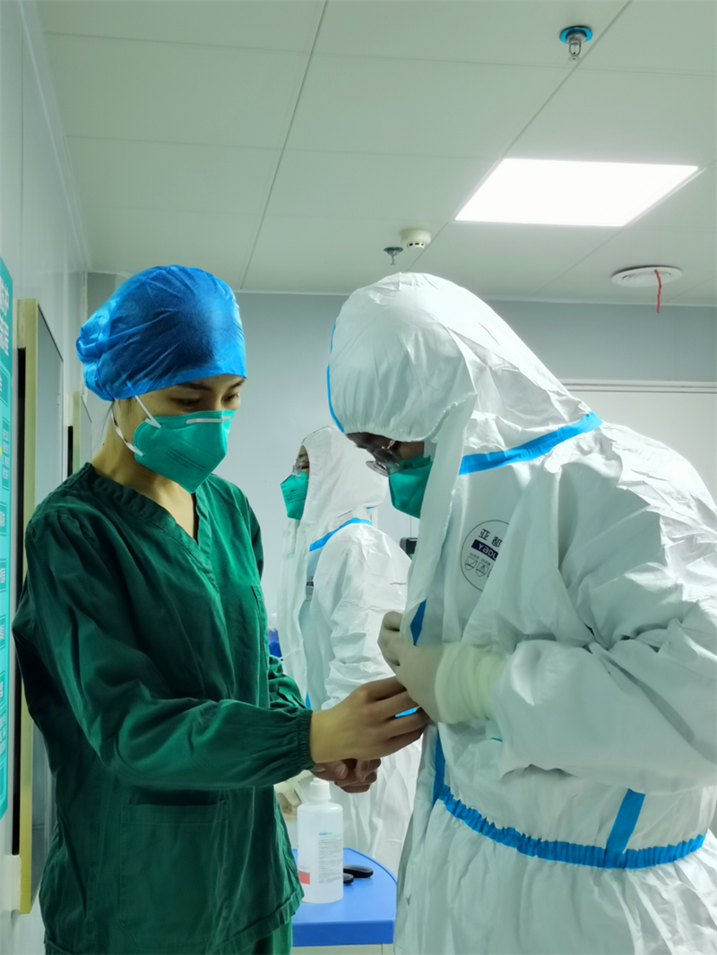 讓一線醫(yī)護(hù)人員在安全的環(huán)境工作和做好自身防護(hù)是“感控人”最重要的使命。劉琦嚴(yán)防死守,盯好隊(duì)員的每一個(gè)動(dòng)作,有污染可能的及時(shí)作出提醒糾正,在病房操作治療過程中,及時(shí)監(jiān)督和提醒每一位隊(duì)員的手衛(wèi)生執(zhí)行,對(duì)遇到的問題當(dāng)場解決。