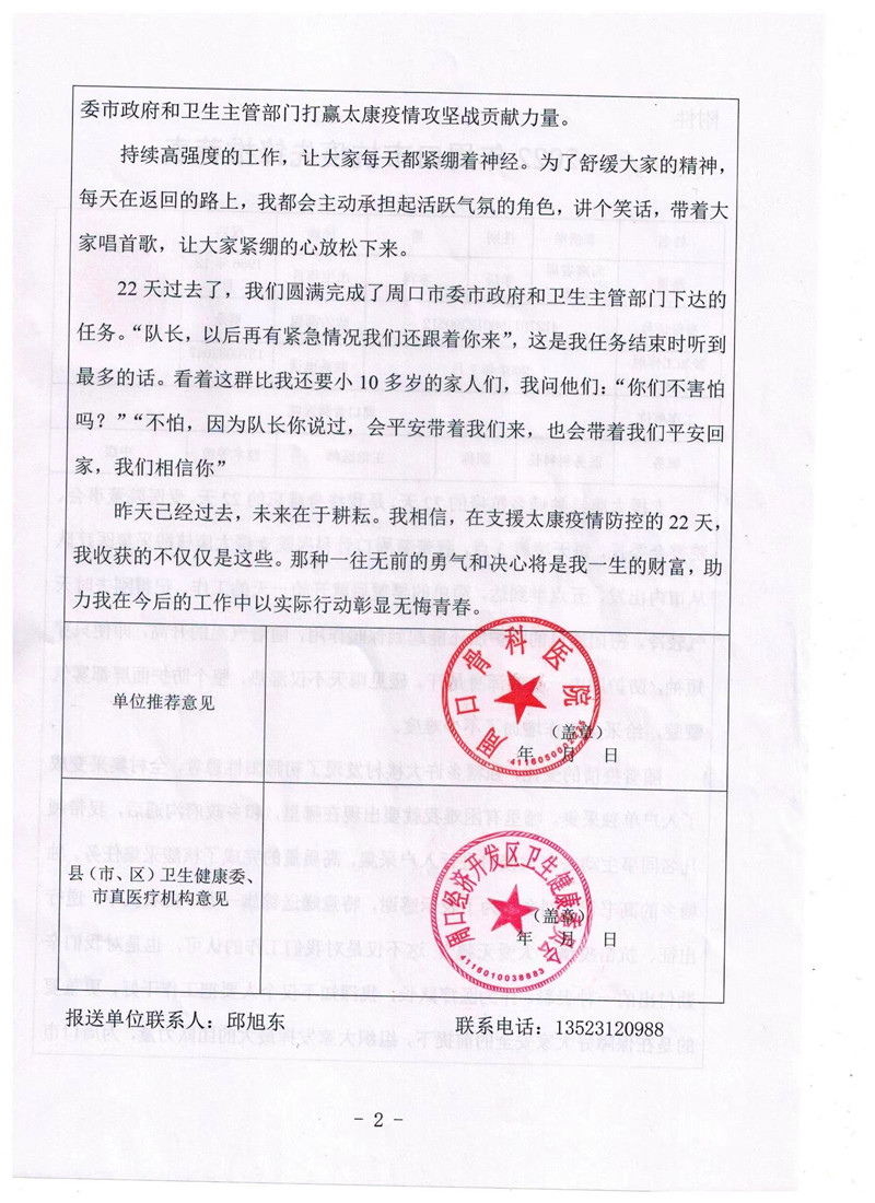 昨天已經(jīng)過(guò)去,未來(lái)在于耕耘。我相信,在支援太康疫情防控的22天,我收獲的不僅僅是這些。那種一往無(wú)前的勇氣和決心將是我一生的財(cái)富,助我在今后的工作中以實(shí)際行動(dòng)彰顯無(wú)悔者春。②16