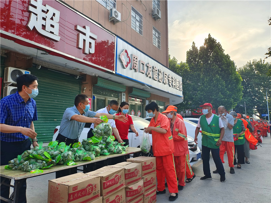 活動(dòng)現(xiàn)場(chǎng),工作人員將粽子依次遞到環(huán)衛(wèi)工人手中,并向他們致以誠(chéng)摯的問(wèn)候和節(jié)日的祝福。