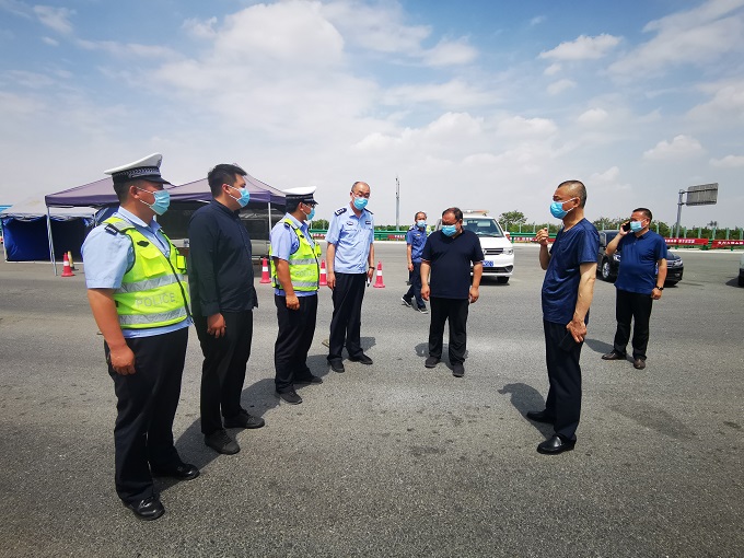 岳備戰(zhàn)一行先后到譚莊高速路口執(zhí)勤卡點、商南高速路口執(zhí)勤點看望慰問值班民輔警及防疫工作人員,并送上慰問品。在卡點,岳備戰(zhàn)詳細檢查了各項防疫工作落實情況,為在一線的防疫人員送去節(jié)日祝福及慰問品,感謝他們用實際行動詮釋擔當精神、奉獻精神,對大家頂著烈日堅守在防疫一線,為廣大百姓的生命安全保駕護航。同時他強調(diào)大家要時刻保持臨戰(zhàn)狀態(tài),以高度的責任感,堅定的信心和有力的舉措,站好崗、履好職,扎實做好疫情防控各項工作,全力守護百姓生命健康安全。
