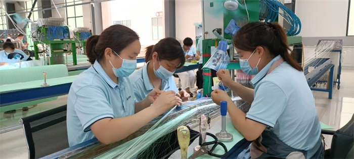 圍繞百億級裝備制造業(yè)產(chǎn)業(yè)集群發(fā)展,提升裝備制造業(yè)科技研發(fā)創(chuàng)新能力。以加快晶鑫科技上市為引領(lǐng),推動傳統(tǒng)企業(yè)整體轉(zhuǎn)型升級。晶鑫科技產(chǎn)業(yè)園內(nèi)綠意盎然,高大寬敞的廠房內(nèi)工人們在各自崗位上有條不紊地忙碌著。拉絲車間,一臺大型編織機械靜靜地運轉(zhuǎn)。機械的一頭,只有一名技術(shù)人員在操控臺上注視著屏幕。工廠負責(zé)人說,這是剛安裝調(diào)試不久的一臺進口機器,自動化程度和生產(chǎn)效率特別高,全國也沒有幾臺。編織車間,來自卞路口鄉(xiāng)董營行政村的馬杰正在熟練地操作著一臺編織機。晶鑫科技辦公室工作人員李文玲說,那臺機器也是進口設(shè)備,技術(shù)含量很高,只有業(yè)務(wù)精湛的工人才能操作。馬杰笑著說,由于她操作的機器先進、技術(shù)要求高,工資也比一般人員要高出許多。來自北城街道辦事處的編制工周福榮,按計件每月也能拿到6000元左右的工資。晶鑫科技負責(zé)人說,由于疫情防控原因,部分外銷產(chǎn)品出口受到影響,但他們的產(chǎn)品在市場上仍是供不應(yīng)求。