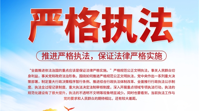 “全面依法治國的重點(diǎn)應(yīng)該是保證法律嚴(yán)格實(shí)施?!眹?yán)格規(guī)范公正文明執(zhí)法,事關(guān)人民群眾切身利益,事關(guān)黨和政府法治形象。