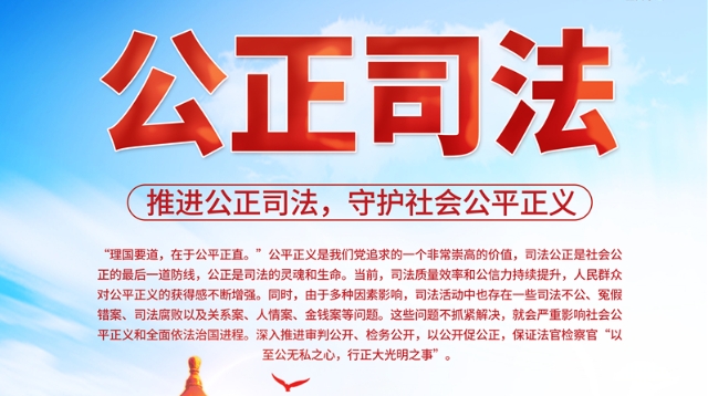 “理國要道,在于公平正直?!惫秸x是我們黨追求的一個(gè)非常崇高的價(jià)值,司法公正是社會(huì)公正的最后一道防線,公正是司法的靈魂和生命。