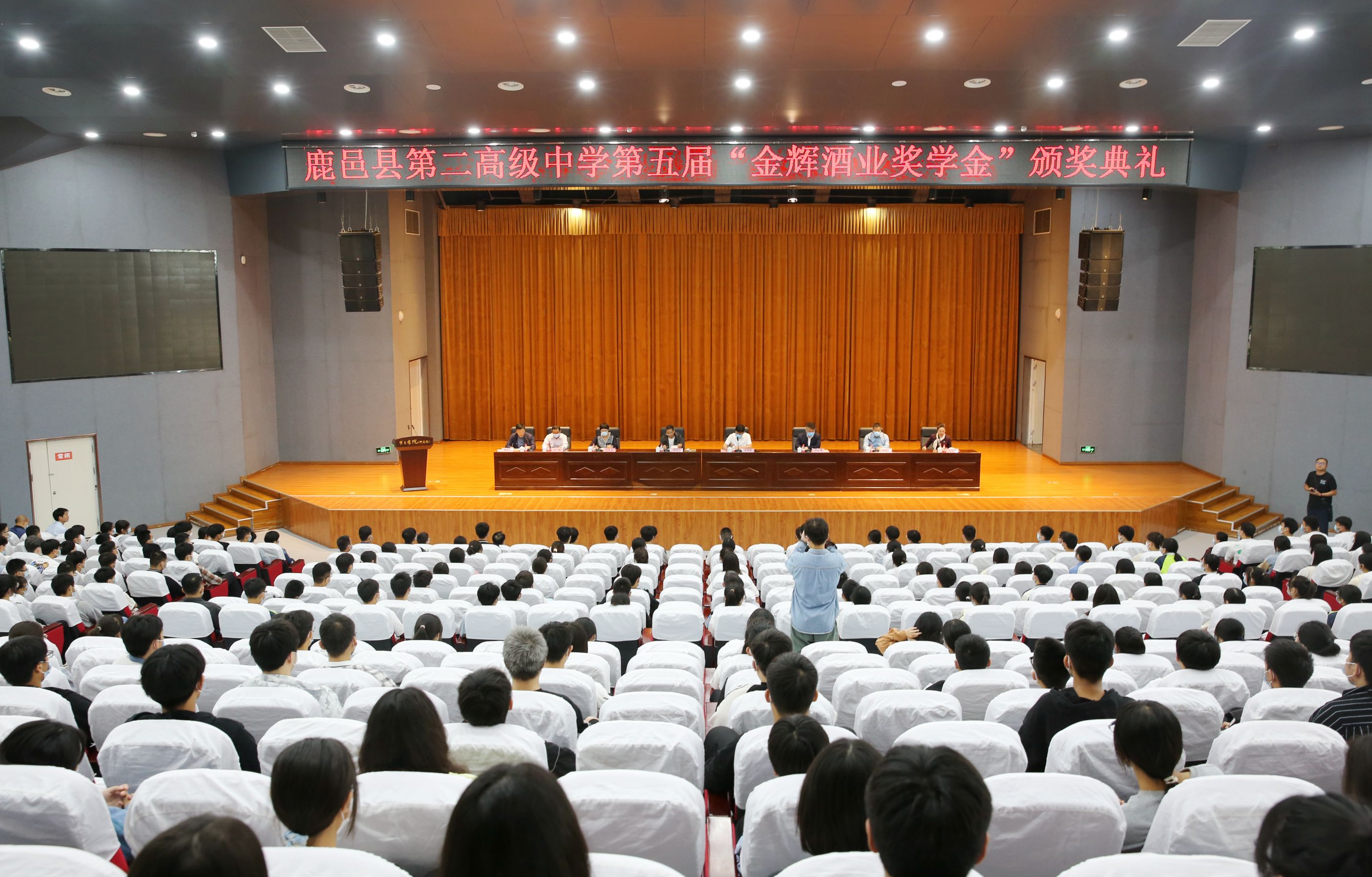 8月29日上午,鹿邑縣第二高級中學第五屆“金輝酒業(yè)獎學金”頒獎典禮在老子學院報告廳隆重舉行。鹿邑縣委常委、宣傳部長、副縣長史凱歌,縣慈善總會會長張光興,縣教體局局長何東玉,縣教體局黨組成員、第二高級中學黨總支書記、校長張現(xiàn)偉,金輝云酒貨倉公司董事長池金清等及獲獎學生、家長參加典禮。