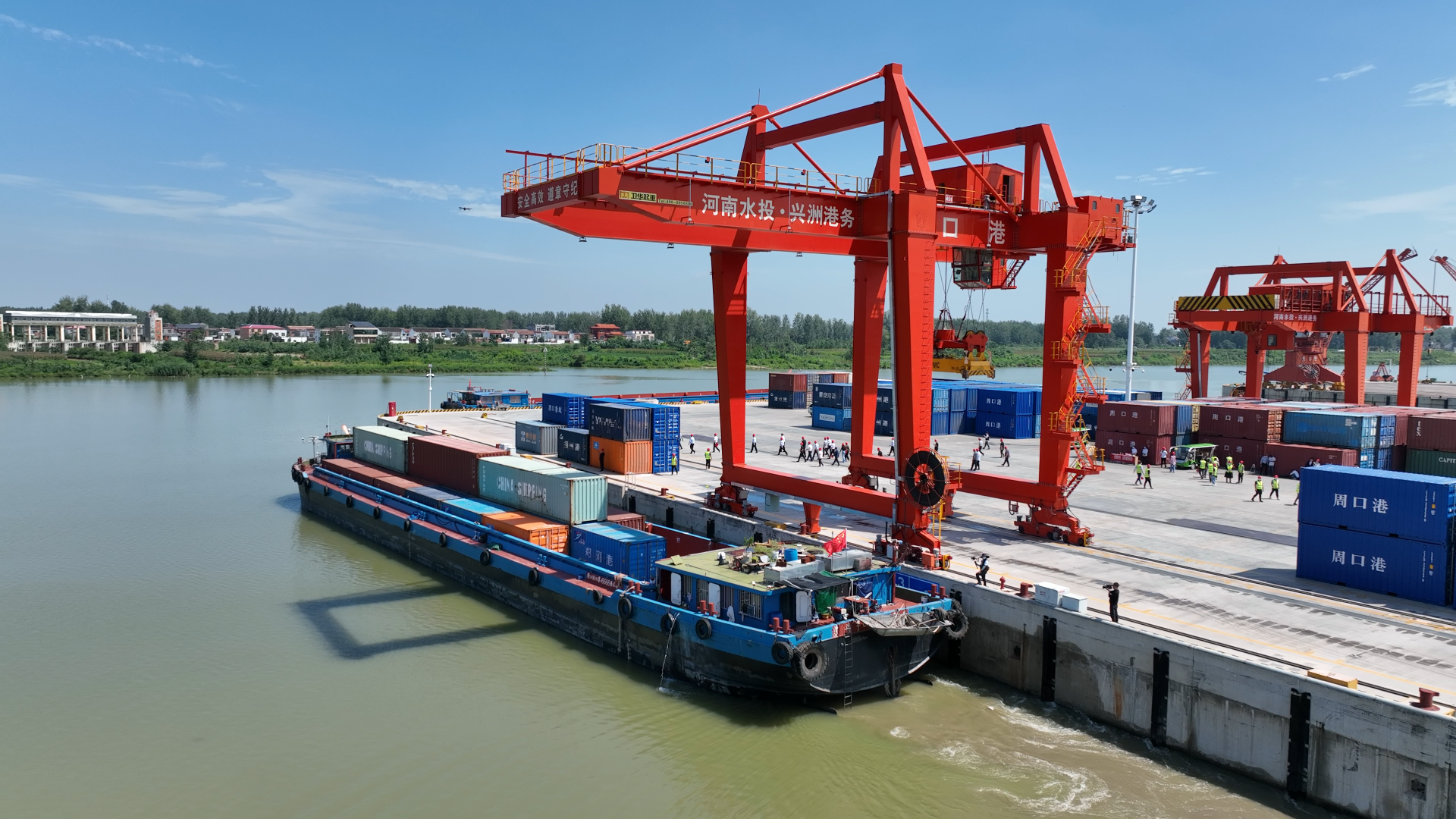 周口港區(qū)黨委委員杜廣賢表示,來(lái)自浙江杭州的外貿(mào)企業(yè),在周口辦廠,得益于航運(yùn)的便利條件,節(jié)約了大筆成本,為周口承接長(zhǎng)三角地區(qū)產(chǎn)業(yè)轉(zhuǎn)移提供了一個(gè)典型的范例。新航線的開(kāi)通,標(biāo)志著周口港走向世界的步伐越來(lái)越快,影響力越來(lái)越大,標(biāo)志著我市內(nèi)河航運(yùn)事業(yè)邁上了新的臺(tái)階、開(kāi)啟了新的征程,把河南與世界的距離拉得更近,助推河南外向型經(jīng)濟(jì)快速發(fā)展。下一步,周口中心港在做好現(xiàn)有國(guó)際國(guó)內(nèi)集裝箱航線運(yùn)營(yíng)的同時(shí),將加強(qiáng)與國(guó)內(nèi)大型港口的合作,積極推進(jìn)開(kāi)通至迪拜、泰國(guó)曼谷等國(guó)際航線,開(kāi)通鄭州中歐班列至太倉(cāng)港、上海、蘇州等水上航線,進(jìn)一步推動(dòng)外貿(mào)集裝箱業(yè)務(wù)的高速發(fā)展,為建設(shè)“臨港新城 開(kāi)放前沿”貢獻(xiàn)港區(qū)力量。③6
