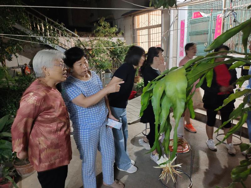 清輝滿天,花香盈院。9月20日晚,苗天才、侯秀蘭夫婦家的曇花開(kāi)了,潔白的花瓣,馥郁的花香,引來(lái)親朋、鄰居絡(luò)繹趕來(lái),賞花合影,小院充滿歡樂(lè)祥和的氣息。