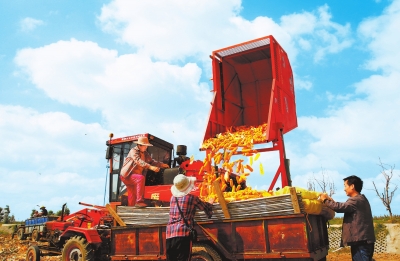 聊起機械收獲玉米的好處,付井鎮(zhèn)王寨村黨支部書記王運啟眉飛色舞?!坝衩讬C械化收割,一次能完成玉米莖稈切割、摘穗、剝皮、集穗、秸稈粉碎等多項作業(yè),秸稈打碎還田,既保護環(huán)境,又給土地增了肥,增加了村民的種植效益。”