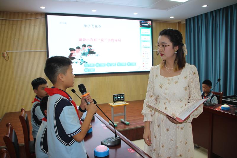 本次詩詞大會共四場初賽和總決賽。比賽包括“詩詞接龍”“飛花令”“看圖猜古詩”“九宮格連詩句”“古詩詞常識”等豐富多彩、靈活多樣的題目,答題過程不但考查學(xué)生的詩詞儲備量,還考驗學(xué)生關(guān)于古詩詞常識的了解程度以及臨場快速反應(yīng)的能力。賽場上18名選手對答如流、思維敏捷、妙語連珠,盡管高手云集、競爭激烈,但選手們“談笑間,檣櫓灰飛煙滅”的泰然自若神態(tài),贏得了觀眾的陣陣掌聲。比賽現(xiàn)場氣氛熱烈、扣人心弦、掌聲不斷。