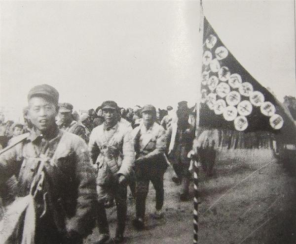十八軍部隊(duì)揮師南下,受到沿途人民群眾的熱烈歡迎。圖為安徽阜陽人民向部隊(duì)贈(zèng)送的錦旗。