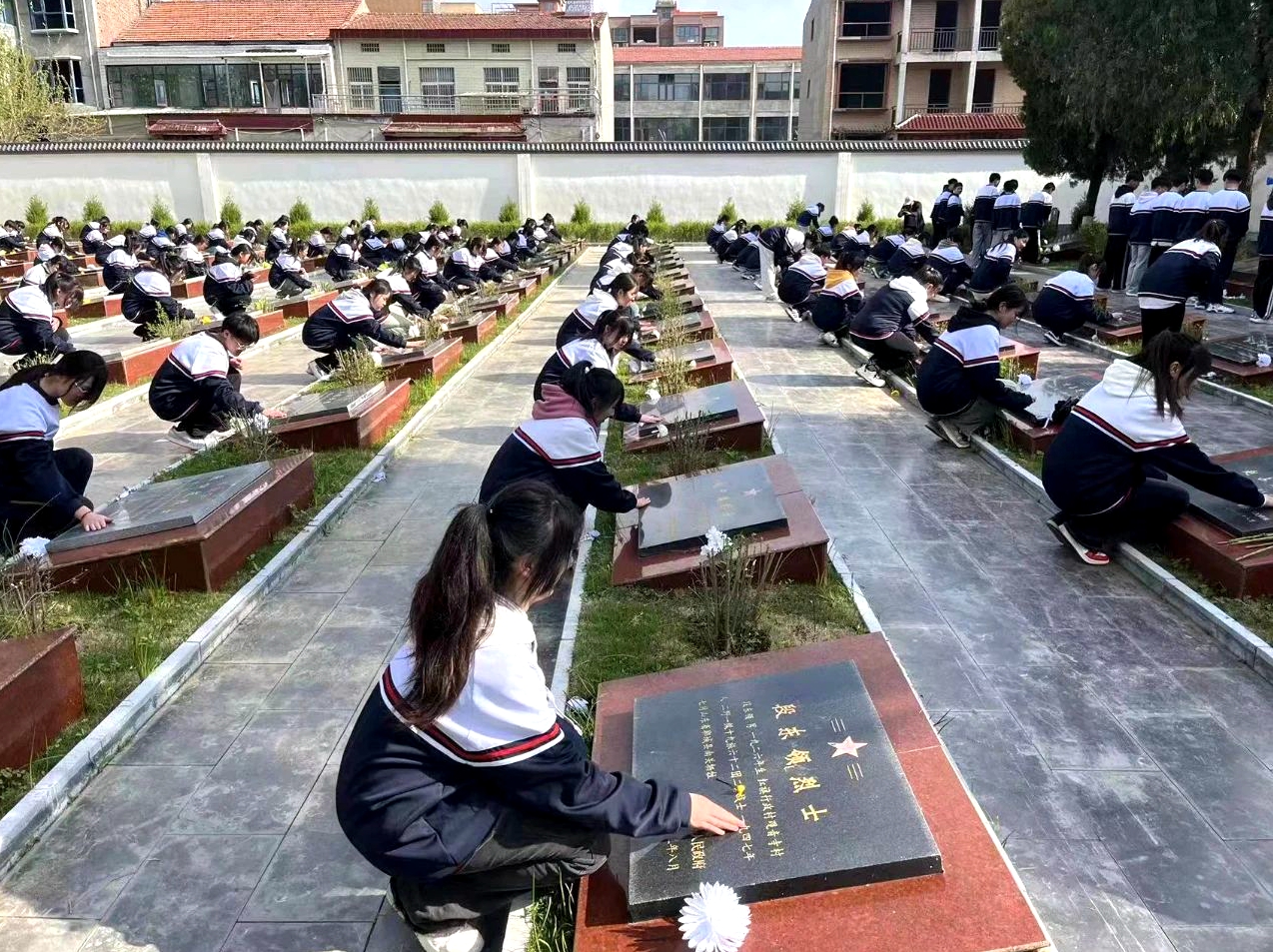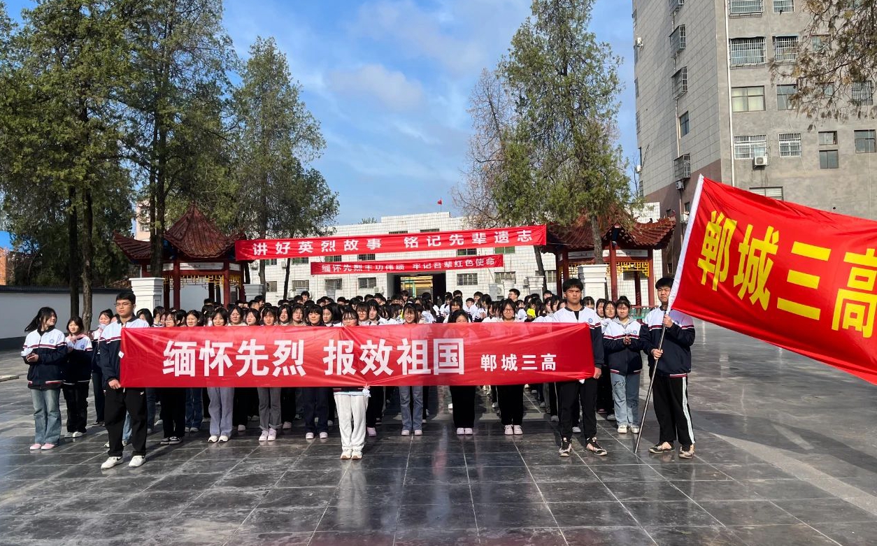 當日上午,鄲城縣第三高級中學為悼念革命烈士,緬懷先烈的豐功偉績,教育學生弘揚民族精神,加強愛國主義教育,組織師生到鄲城縣烈士陵園開展“清明祭英烈 ”為主題的清明節(jié)祭掃活動。