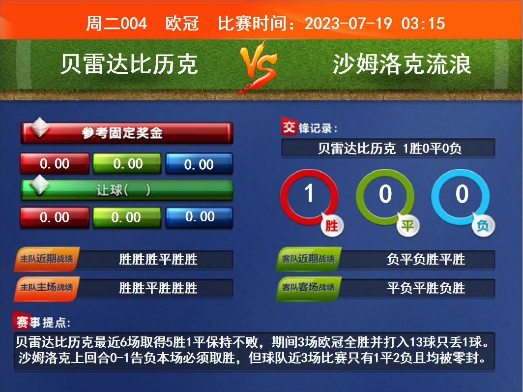 比賽時(shí)間:2023-07-19 03:15賽事提點(diǎn):貝雷達(dá)比歷克最近6場取得5勝1平保持不敗,期間3場歐冠全勝并打入13球只丟1球。沙姆洛克上回合0-1告負(fù)本場必須取勝,但球隊(duì)近3場比賽只有1平2負(fù)且均被零封。