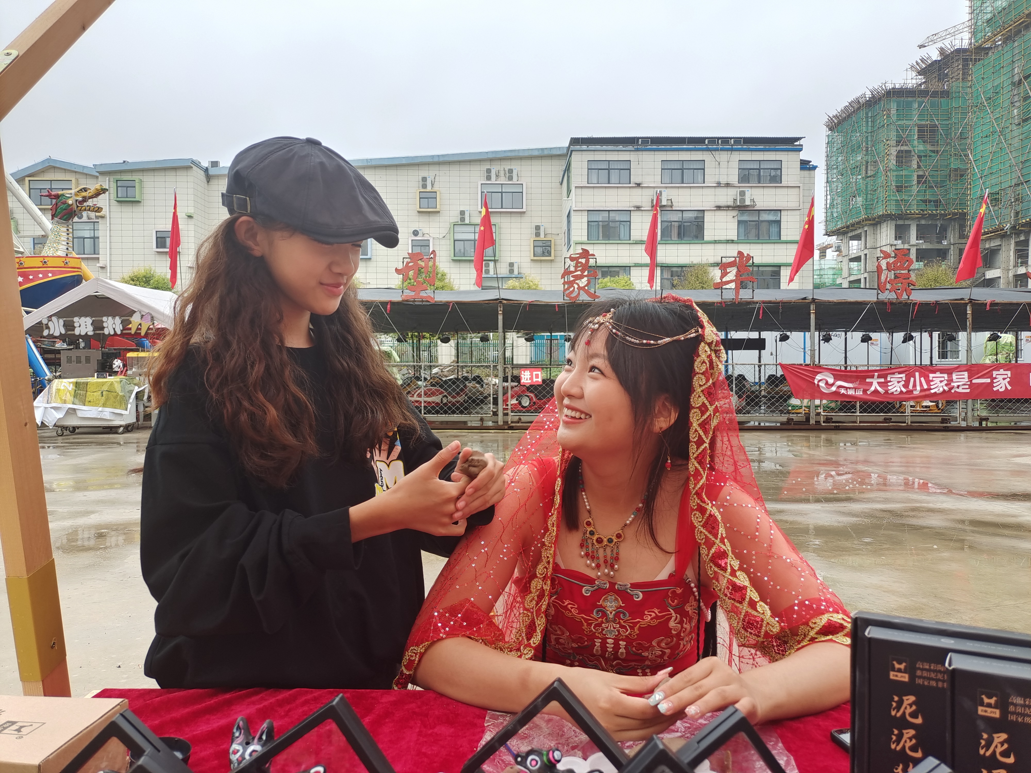 伴隨著開(kāi)場(chǎng)舞《盛世歡歌》,“潮流雙節(jié)·中秋游園會(huì)暨國(guó)慶嘉年華”活動(dòng)啟動(dòng)儀式正式拉開(kāi)帷幕。泥泥狗、剪紙、書(shū)法、繪制團(tuán)扇……現(xiàn)場(chǎng)工作人員有的身著少數(shù)民族服裝,有的身著漢服,用親手制作的方式展示著傳統(tǒng)非物質(zhì)文化遺產(chǎn)獨(dú)有的韻味,吸引著來(lái)往的大人小孩駐足。有的甚至親自參與制作,捏泥泥狗、寫(xiě)毛筆字、畫(huà)傳統(tǒng)團(tuán)扇……現(xiàn)場(chǎng)歡笑不斷,大家在親自動(dòng)手的過(guò)程中充分感受著中國(guó)傳統(tǒng)節(jié)日的豐富文化內(nèi)涵。