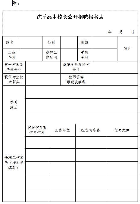為拓寬選人用人渠道,倡導教育家辦學治校,根據(jù)國家相關政策規(guī)定,經(jīng)沈丘縣委、縣政府研究同意,擬面向全國公開選聘河南沈丘高中校長1名?,F(xiàn)公告如下:
