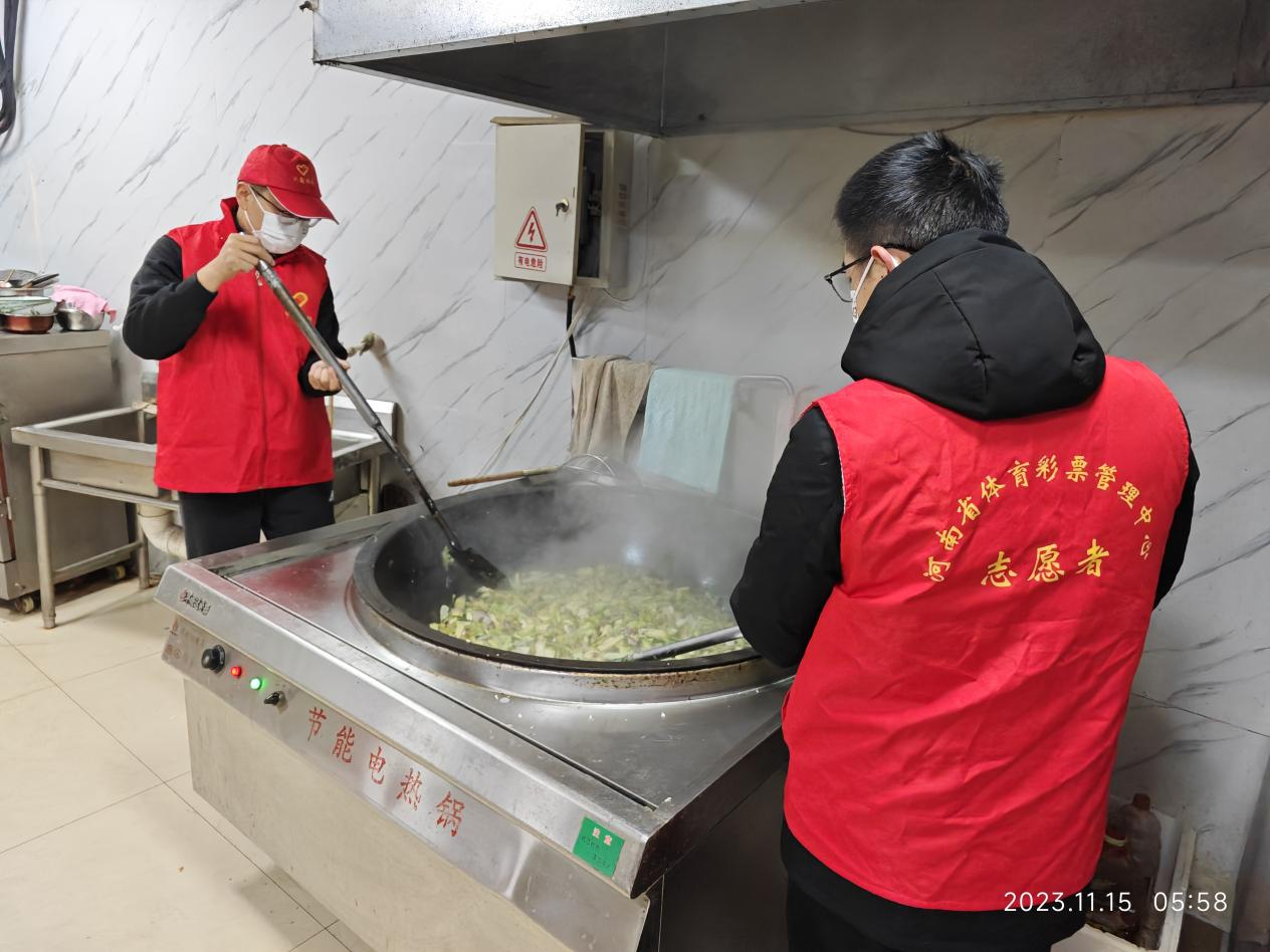11月16日凌晨5時(shí),周口體彩分中心志愿者還到“東方愛心粥屋”開展志愿服務(wù)活動(dòng),幫助粥屋工作人員洗菜、切菜、炒菜、熬粥。