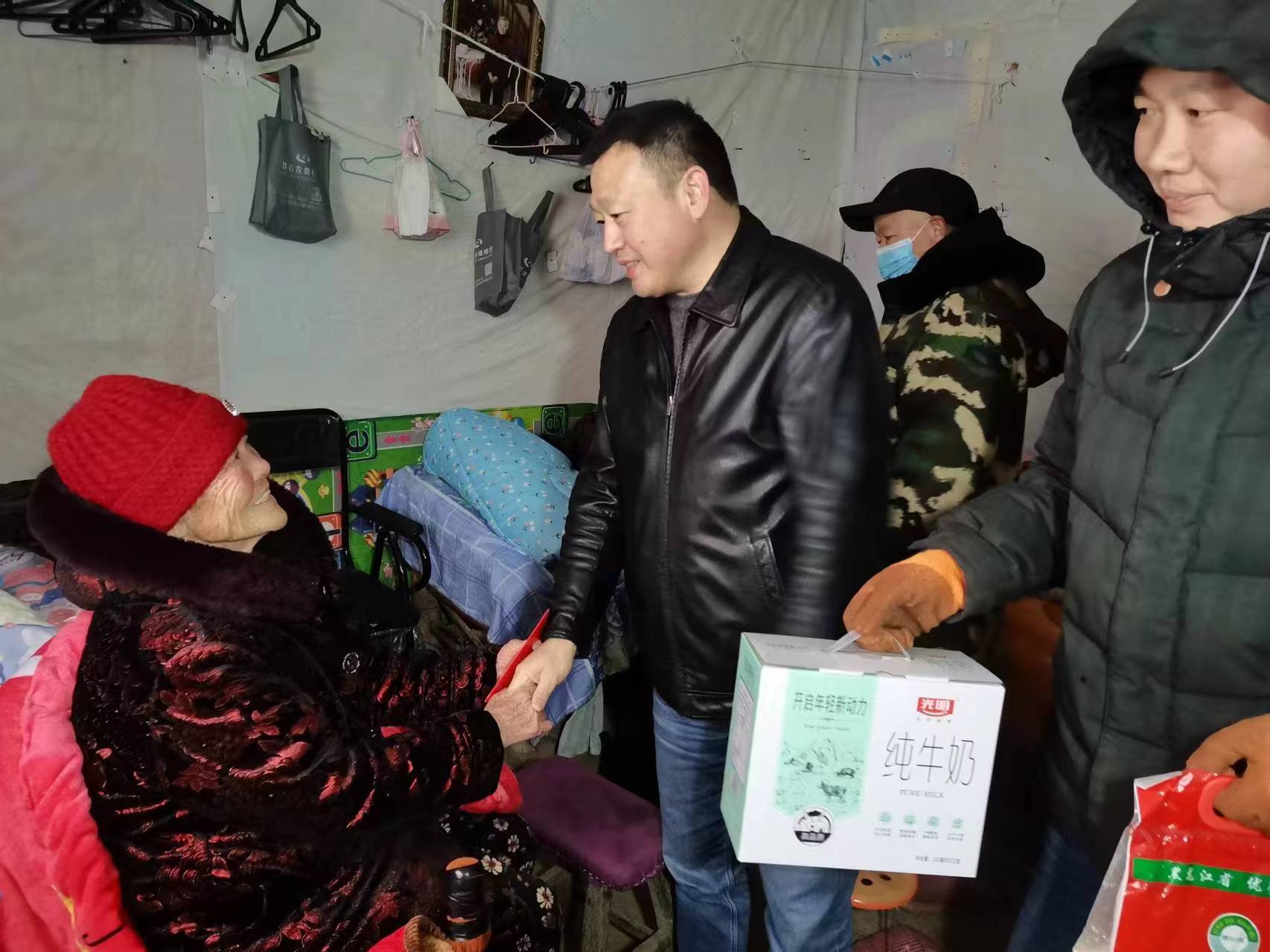 西關(guān)行政村黨支部書記孫振偉到群眾家中發(fā)放春節(jié)補助進行問候。