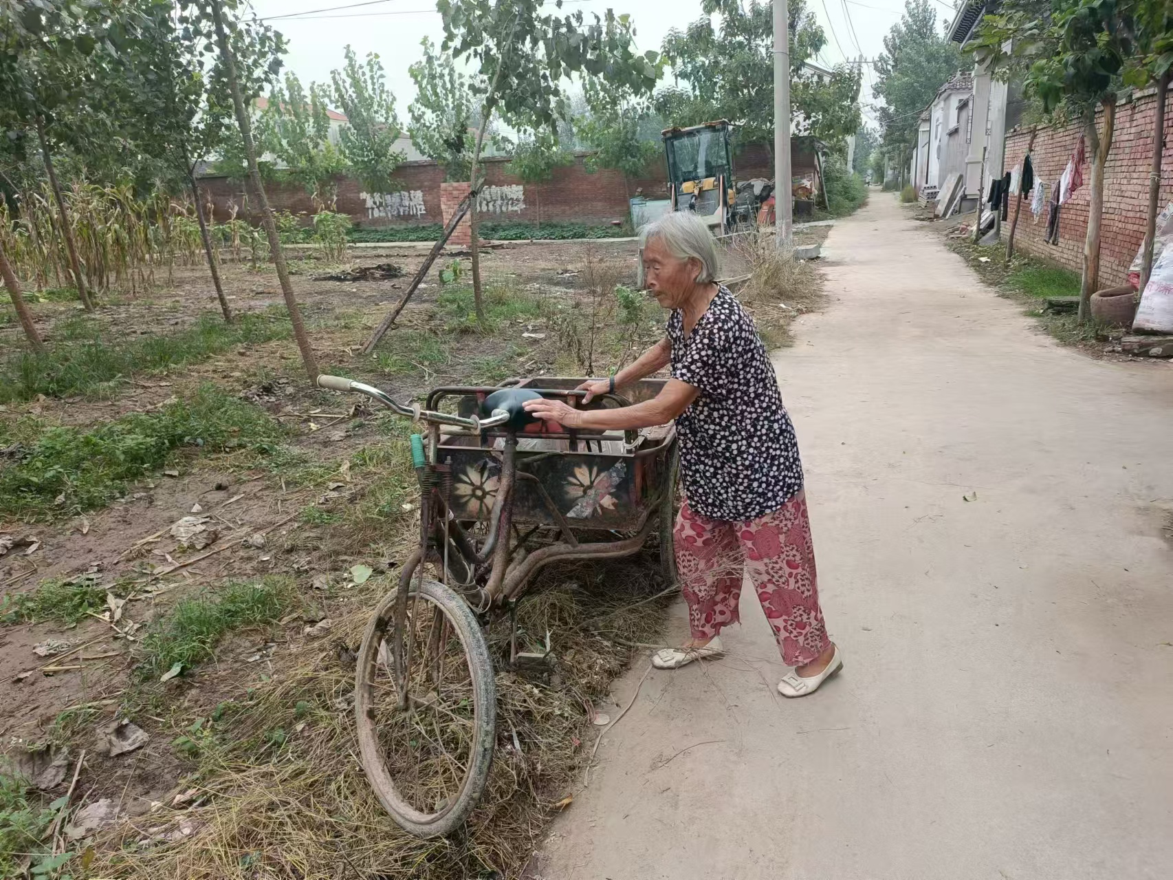 邵玉梅老人正要騎上三輪車外出拾荒。