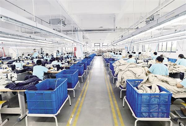 位于項城市的江蘇華瑞年產(chǎn)300萬件服裝服飾基地項目,總投資約1.43億元,主要建設(shè)標(biāo)準(zhǔn)化廠房、物流倉儲、科技研發(fā)樓等配套設(shè)施,年產(chǎn)各類服裝服飾300萬件。目前,該項目已建成投產(chǎn)。項目投產(chǎn)達(dá)效后,可實現(xiàn)年稅收2000萬元,提供就業(yè)崗位700個。圖為工人正在加工訂單產(chǎn)品。