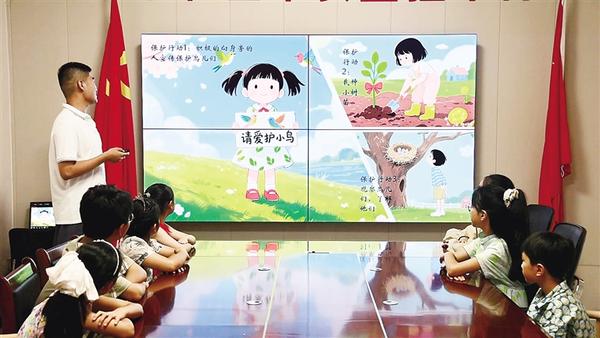 返鄉(xiāng)大學(xué)生志愿者魏柏宇向孩子們介紹珍稀鳥類的外形特征、生活習(xí)性與生存現(xiàn)狀。近日,鄲城縣自然資源局組織工作人員、返鄉(xiāng)大學(xué)生志愿者到該縣新城街道秀水社區(qū)開辦科普課堂,旨在通過生動講解與互動實踐,深化社區(qū)青少年對生態(tài)保護的認識。記者 徐松 通訊員 陳吳陸 攝