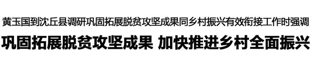 本報訊 (記者 王艷 王晨) 11月18日,市委書記黃玉國到沈丘縣調研鞏固拓展脫貧攻堅成果同鄉(xiāng)村振興有效銜接工作,強調要深入學習貫徹黨的二十屆四中全會精神和習近平總書記在河南考察時重要講話精神,全面落實省委和市委部署要求,扛牢責任、真抓實干,毫不松懈鞏固拓展脫貧攻堅成果,加快推進鄉(xiāng)村全面振興,牢牢守住不發(fā)生規(guī)模性返貧致貧底線。