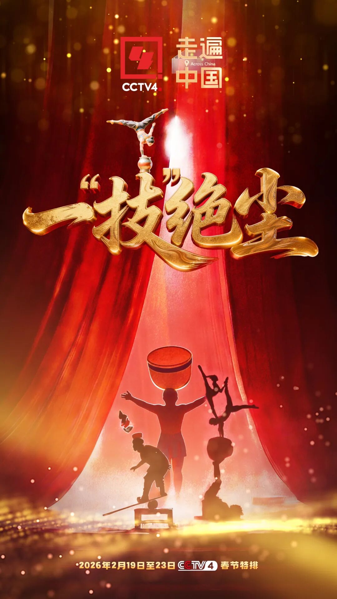 2月19日(初三)至2月23日(初七)CCTV-4《走遍中國》四集系列節(jié)目《一“技”絕塵》即將拉開帷幕,跟隨我們的腳步,走進河南周口、河北吳橋、江蘇建湖、河南濮陽這四座“雜技秘境”,聽千古技藝的聲聲喝彩,探尋一根杠、一盞缸、一方舞臺背后,那些讓世界屏息的東方絕藝。