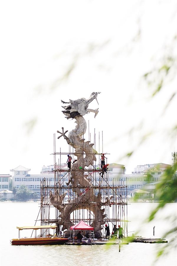 6月5日,建筑工人在搭建腳手架,開(kāi)始對(duì)淮陽(yáng)龍湖中的9座龍形雕塑進(jìn)行修繕。 ...[詳細(xì)]