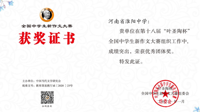 [淮陽(yáng)]高三學(xué)生榮獲“葉圣陶杯”全國(guó)作文大賽一等獎(jiǎng)