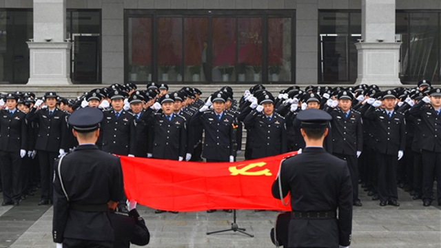 [鹿邑]公安:面對(duì)國(guó)旗重溫入黨誓詞鑄警魂踐使命