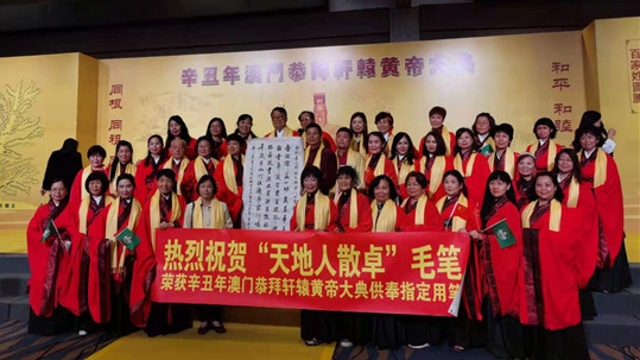 [鹿邑]30名澳門學(xué)子用鹿邑天地人毛筆書寫百家姓恭拜軒轅黃帝