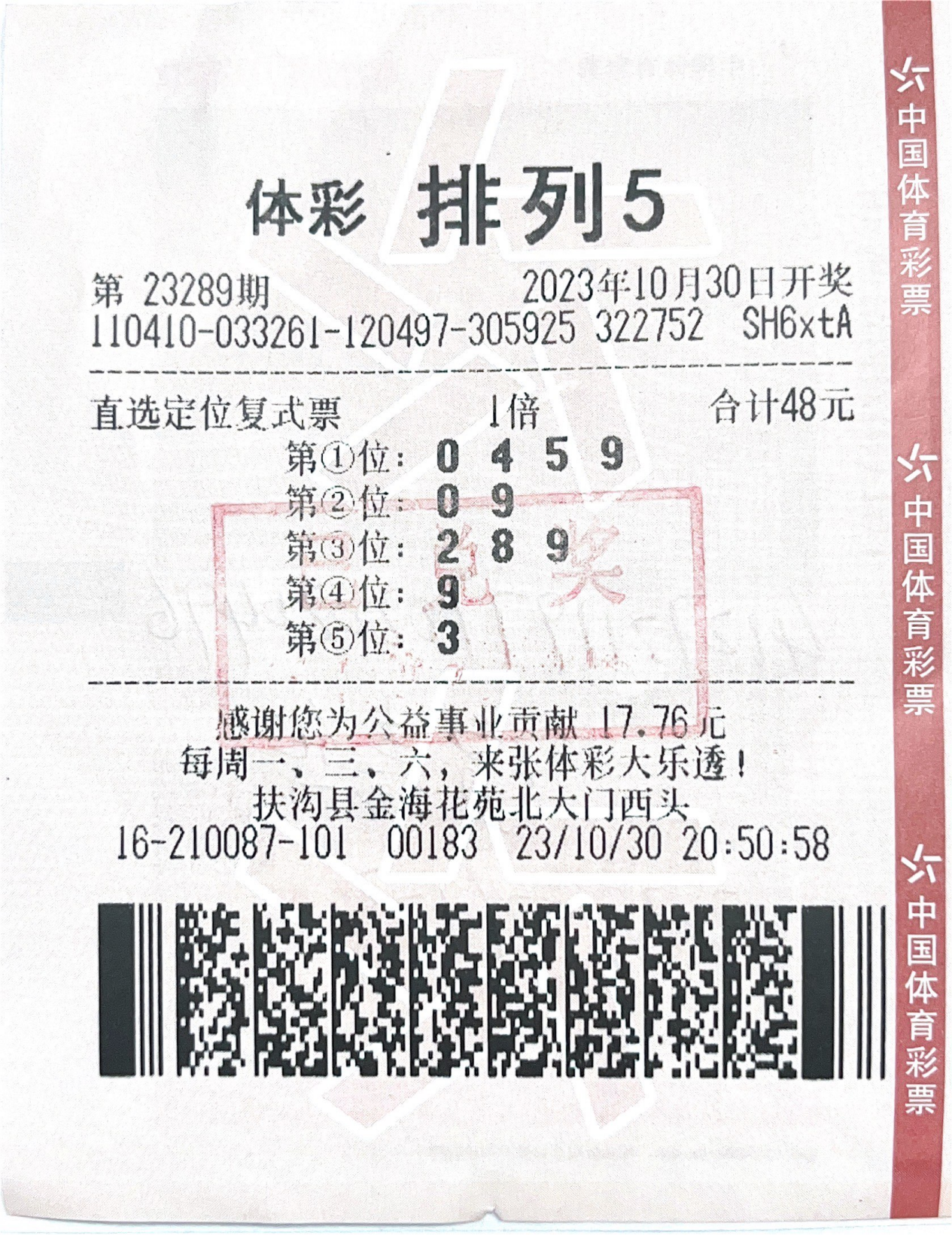 10月30日晚,體彩“排列5”第23289期開獎,開獎號碼為“9、9、8、9、3”。扶溝縣4116210087實體店喜中“排列5”一等獎1注,獎金10萬元。10月31日,中獎?wù)哧懴壬鷣淼街芸隗w彩分中心兌獎大廳領(lǐng)取了獎金。 ……[詳細(xì)]