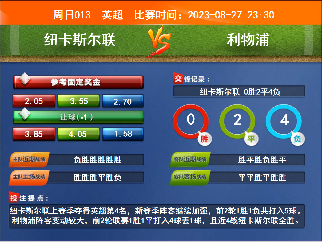 周日競(jìng)彩足球強(qiáng)檔:紐卡斯?fàn)栍嚱鹗?拜仁踏上衛(wèi)冕之旅……[詳細(xì)]