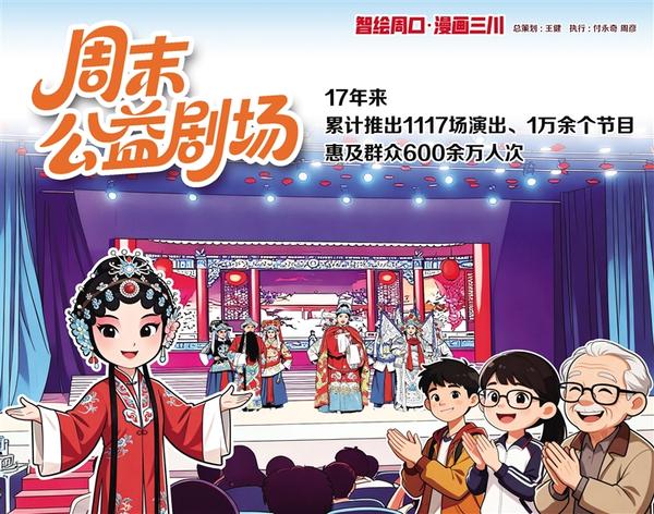 由中共周口市委宣傳部、周口市文化廣電和旅游局主辦,周口市文化館承辦的“周末公益劇場(chǎng)”活動(dòng),17年來累計(jì)推出1117場(chǎng)演出、1萬余個(gè)節(jié)目,惠及群眾600余萬人次,培育380支文藝團(tuán)隊(duì)及2000余名文化志愿者?!?/p>