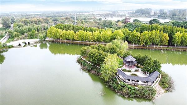 10月23日,周口植物園內(nèi),湖面如鏡,林木漸黃。