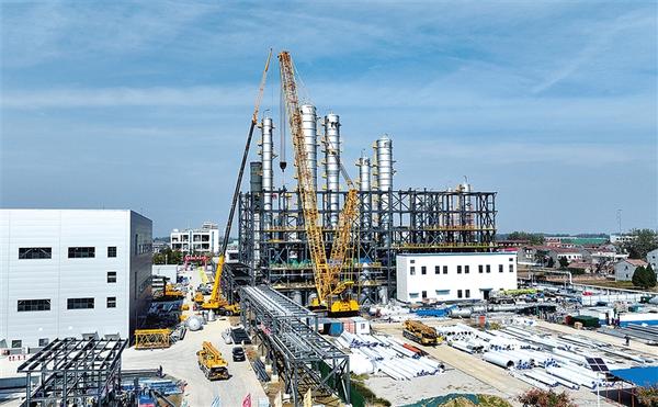 10月24日,在河南金丹乳酸科技股份有限公司年產(chǎn)15萬噸聚乳酸項(xiàng)目建設(shè)現(xiàn)場(chǎng),一臺(tái)800噸級(jí)塔吊正在繁忙作業(yè)。